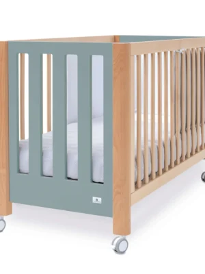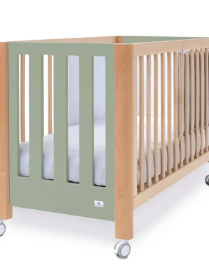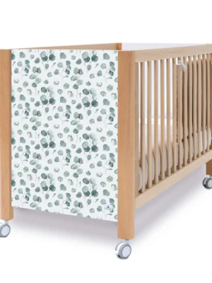 Cuna de madera Ombra Musgo con vinilo de hojas eucalipto 60x120 cm