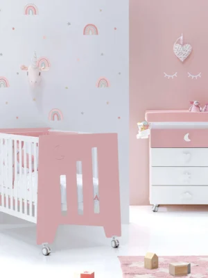 No busques más, la cuna perfecta para tu pequeña princesa está aquí! Esta cuna de colecho 60×120 cm en rosa y blanco para niñas es funcional y evolutiva. Con los correspondientes accesorios opcionales, de cuna de bebé 60×120 cm se puede convertir en cuna colecho, camita infantil y, posteriormente en escritorio. Una cuna 4en1 para utilizar más allá del primer año del bebé. Además, para poder practicar colecho seguro con el bebé, la cuna dispone de 5 alturas de somier, para ajustarla a la altura de la cama de los padres. Su combinación de color te permitirá crear el dormitorio infantil para niña que siempre habías soñado.