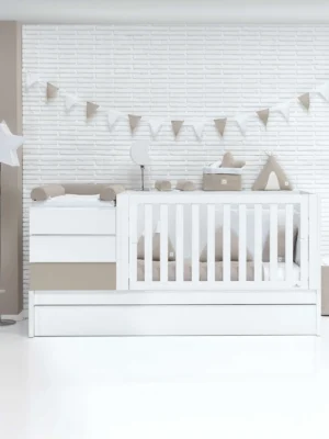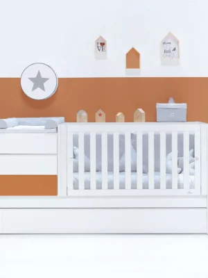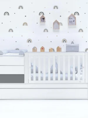 Nuestras cunas convertibles crecen con tu bebé, transformándose en cama infantil para acompañar sus primeros años con comodidad y estilo.