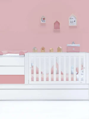Cuna convertible Sero Kubo Quarzo blanca/rosa 70×140 cm