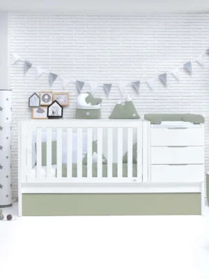 Cuna convertible Sero More blanca/eucalipto 70×140 cm