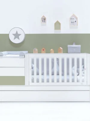Cuna convertible Sero More blanca/verde-oliva 70×140 cm