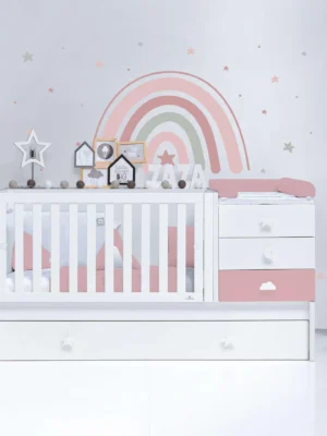 Cuna convertible Sero Bubble Blanco/Rosa 70×140 cm