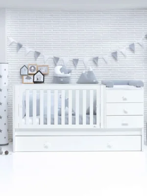 Cuna convertible Sero More Blanca/Gris 70×140 cm