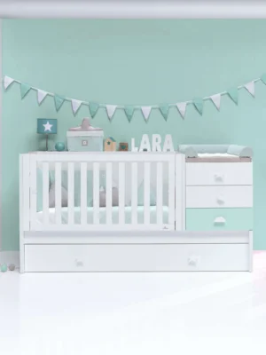 Cuna convertible Sero More Blanca/Verde-Agua 70×140 cm