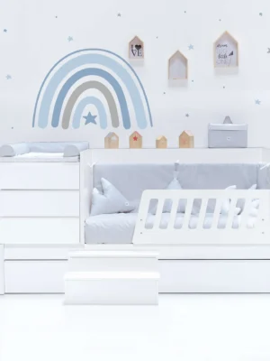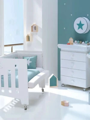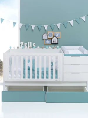 -15% Cuna convertible Sero More Blanca/Verde-Agua 70×140 cm