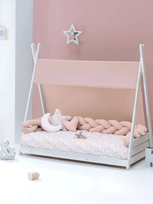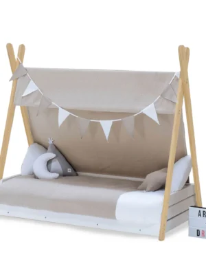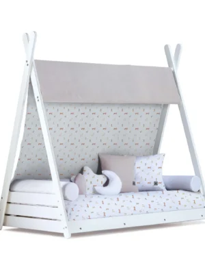 -15% Cama cabaña Montessori Homy XL blanca textil beige 90×200