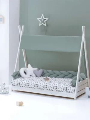 -15% Cama cabaña Montessori Homy XL blanca textil verde eucalipto 90×200